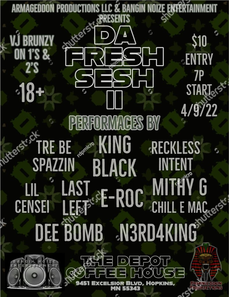 Go to My Bandcamp Page and pick up all my music 35% off!! Don’t forget if you’re in Hopkins, MN on April 9th, come out to The Depot Coffee House for Da Fresh Sesh Vol. 2
