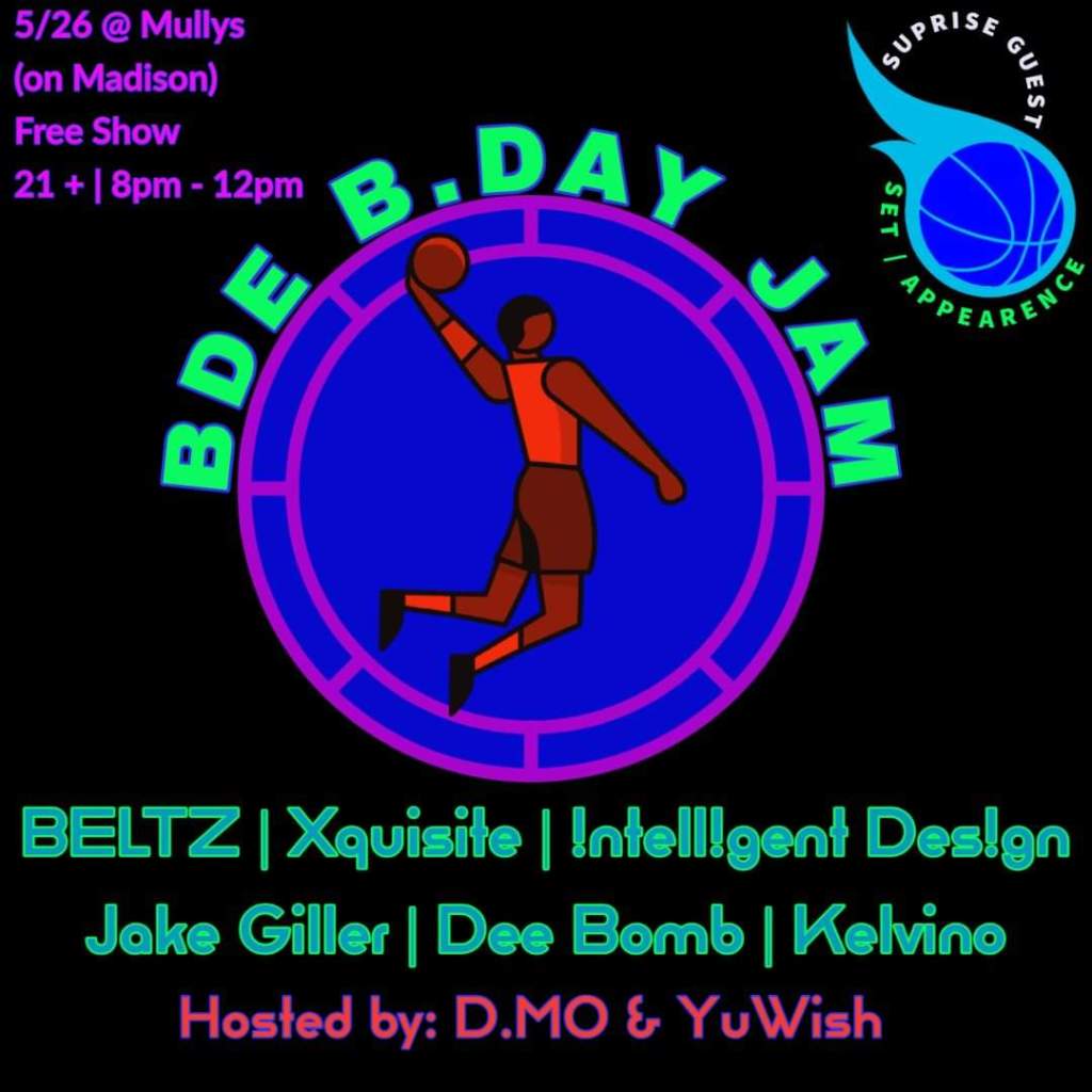 Performances by BELTZ | Exquisite | !ntell!gent Des!gn | Jake Giller | Kelvino | and yours truly, Dee Bomb. Hosted by D.Mo & YuWish