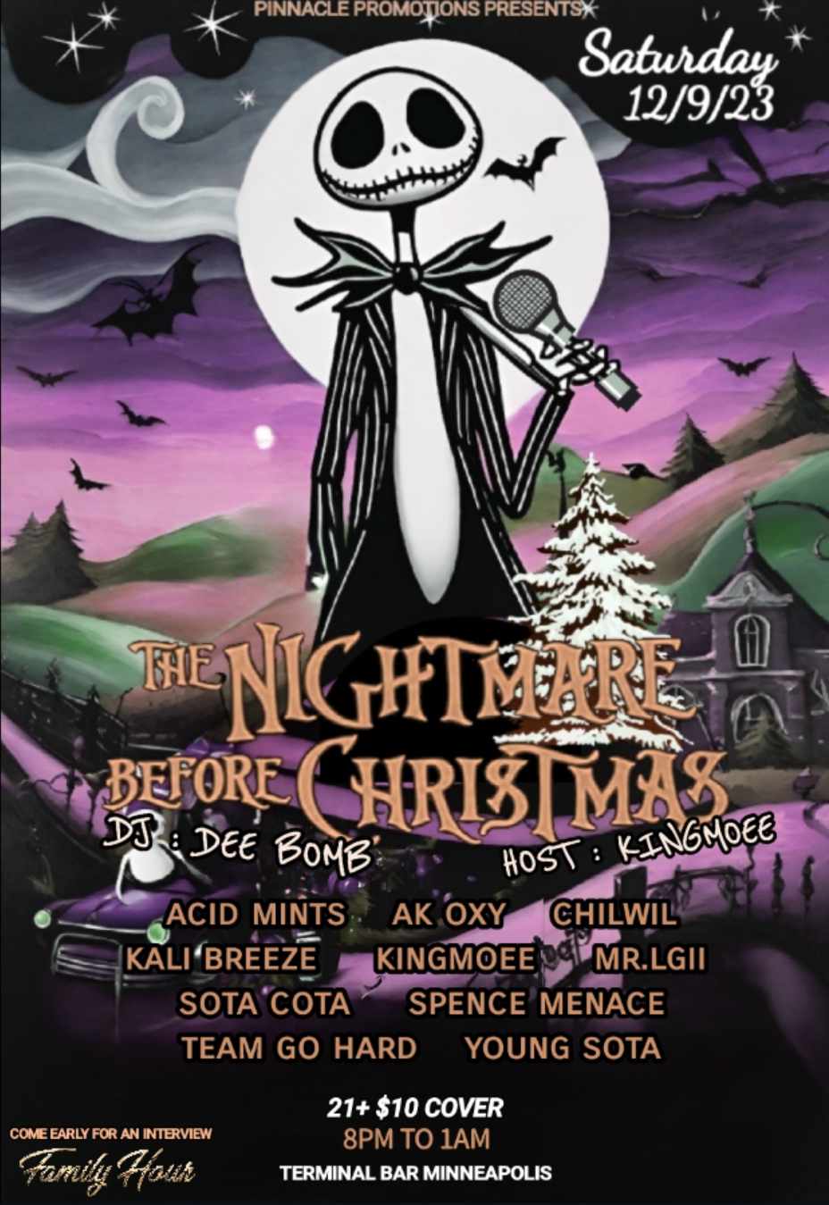 I’ll be on the 1’s & 2’s at The Terminal Bar in Minneapolis on December 9th for The Nightmare before Christmas event. Is presented by Pinnacle Promotions hosted by King Moee featuring some of Minnesota’s dopest talent.