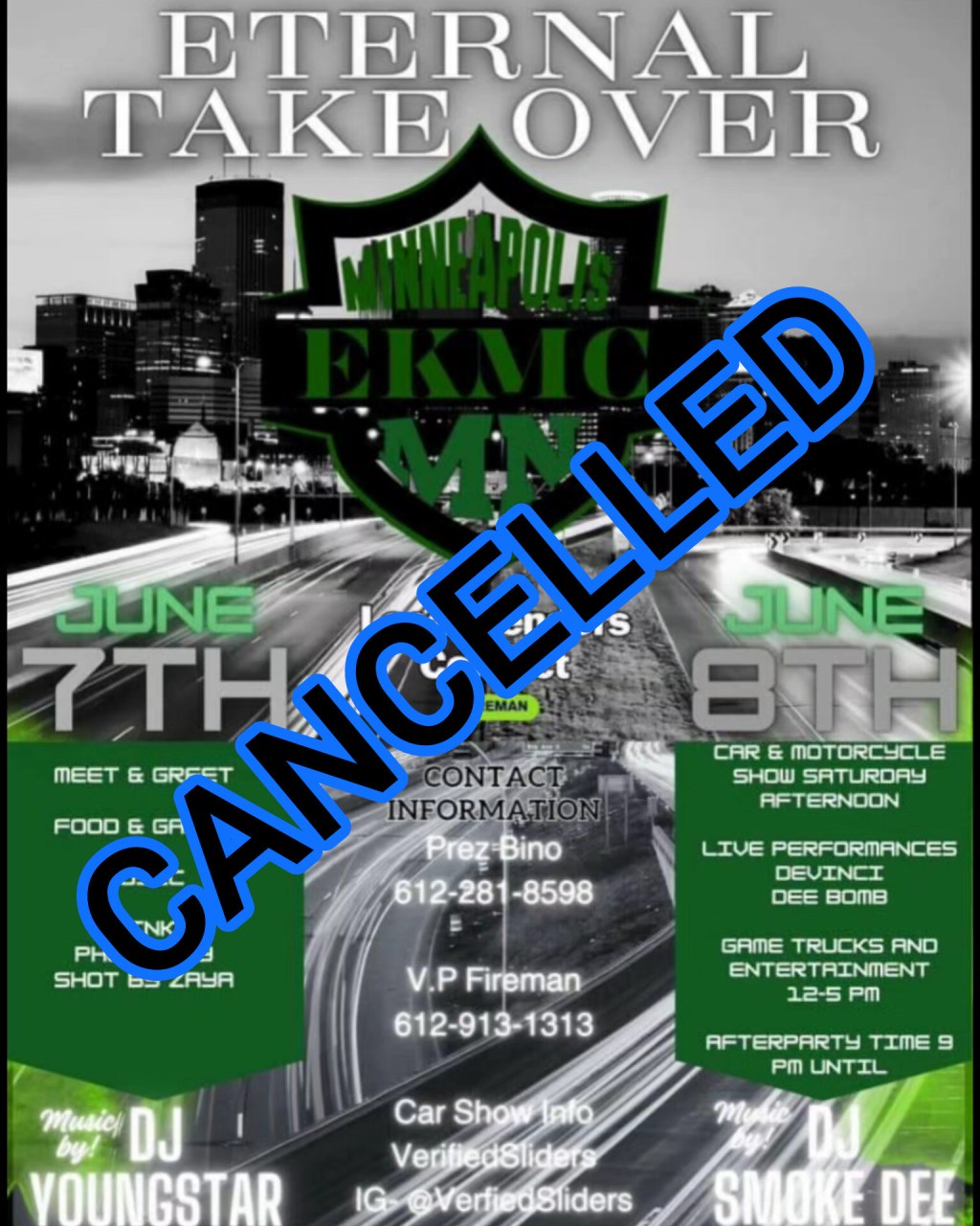It’s been awhile since I’ve performed in the Twin Cities and I was looking forward to it. However due to weekend violent tragedy in the city, the Eternal Kingz Annual Takeover is Officially Cancelled.