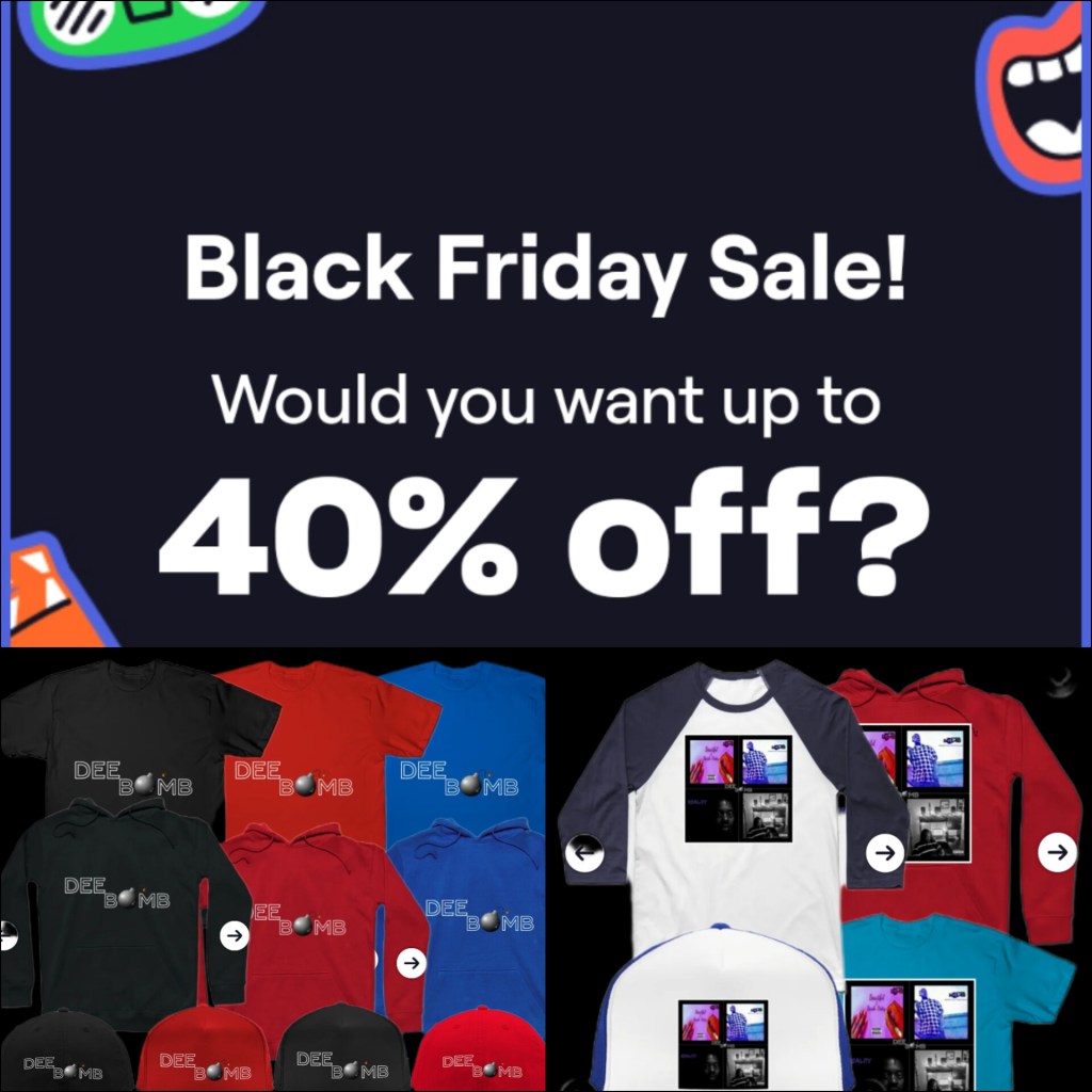 I got merch available at teepublic and there’s a Black Friday Sale where you can purchase merch up to 40% off!! Y’all know a lot of things on Black Friday go for the low and my merch is a prime example so I appreciate all the support and if you like what you see, grab you a few things to rock.