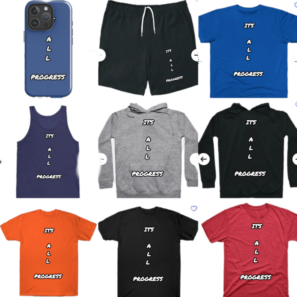 I have a new batch of merchandise available called, “It’s All Progress” and that is a saying I’ve been rocking with since 2010 and that’s all my career has ever been, progress.